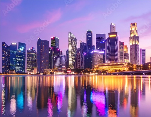 © Kirana, Fototapeta premium Vibrant city skyline at twilight