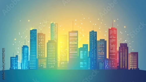 © luck, Naklejka premium Vibrant city skyline illustration with modern architectural design elements