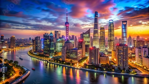 © Rafay, Obraz premium Vibrant City Skyline Lights for Urban Backgrounds