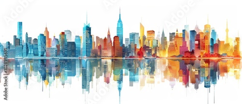 Naklejka premium Vibrant City Skyline Reflection at Dusk