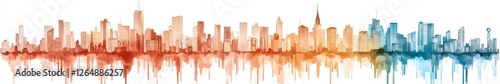 Fototapeta premium Vibrant City Skyline Reflection in Colorful Gradient with Diverse...