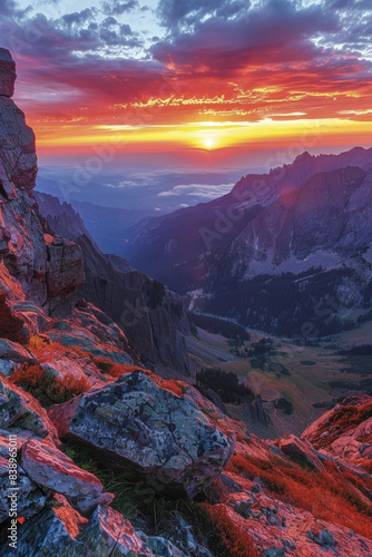 © ChubbyCat, Obraz premium Vibrant city skyline silhouetted against a stunning sunset