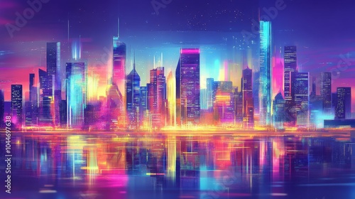© WanCorp, Obraz premium Vibrant City Skyline with Clean Lines and Colors