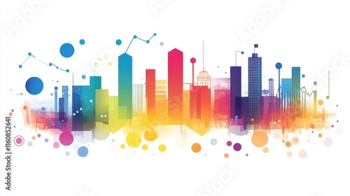 Fototapeta premium Vibrant City Skyline with Colorful Abstract Design and Geometric Shapes