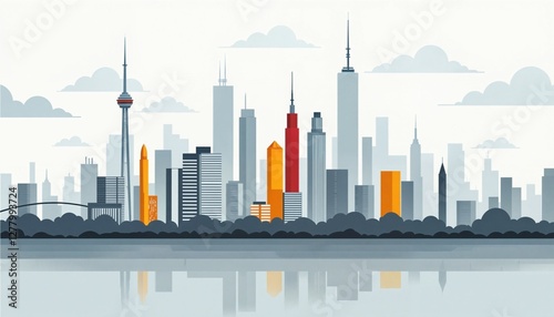 Fototapeta premium Vibrant City Skyline with Reflective Water - Modern Architecture Illustration