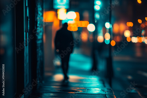 Fototapeta premium Vibrant City Street at Night with Glowing Lights and Urban Atmosphere...