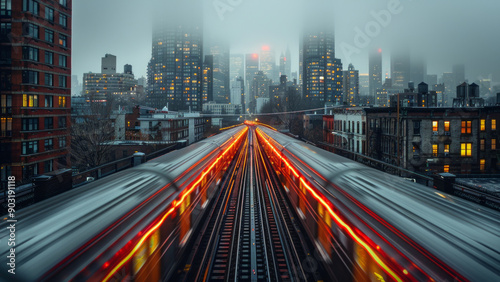 © winona, Obraz premium Vibrant City Street in the Rain with Light Trails