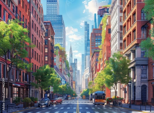 © duyina1990, Fototapeta premium Vibrant City Street Scene Illustration