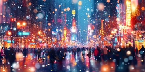 © gen_pick, Fototapeta premium Vibrant city street with silhouettes and colorful light bokeh