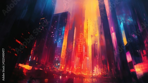 © Rere_Art151, Fototapeta premium Vibrant Cityscape at Night Illuminated Skyscrapers