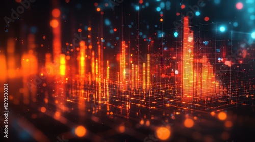 © Jirapong, Obraz premium Vibrant cityscape at night with bright lights illuminating skyscrapers and busy streets creating a lively atmosphere