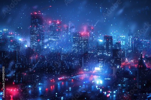 Obraz premium Vibrant Cityscape at Night with Glowing Lights