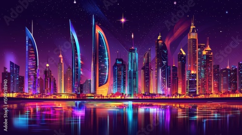 © Ahmad, Fototapeta premium Vibrant cityscape at night with neon lights.