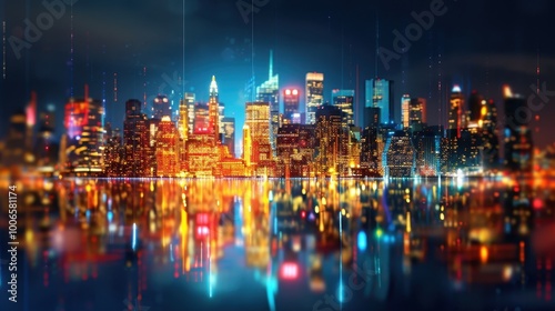 Obraz premium Vibrant Cityscape at Night with Reflections