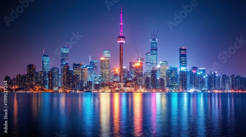 Fototapeta premium Vibrant Cityscape at Night with Reflections