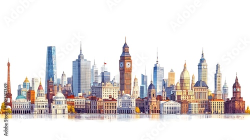 © Thaweechai, Obraz premium Vibrant Cityscape of Famous Landmarks