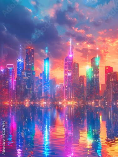© Pannawish, Obraz premium Vibrant Cityscape Radiating with Colorful Lights Celebrating the LGBTQ Community s Presence and Diversity