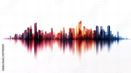 Fototapeta premium Vibrant cityscape reflected in still water, showcasing a stunning array of...