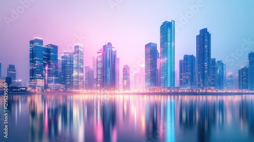 © lek Rinto, Fototapeta premium Vibrant Cityscape Reflection at Dusk