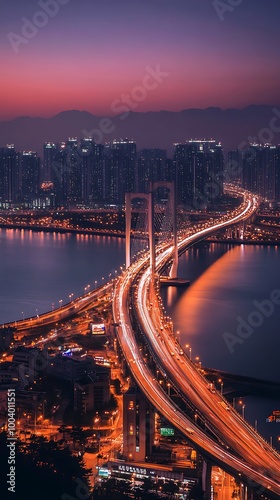 © Bijali, Fototapeta premium Vibrant cityscape showcasing incheon bridge in stunning detail image