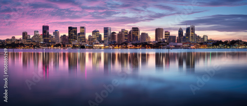 Fototapeta premium Vibrant Cityscape Twilight Reflections