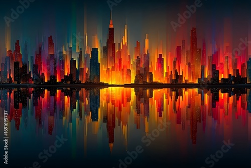 Obraz premium Vibrant cityscape with fiery reflections abstract skyline