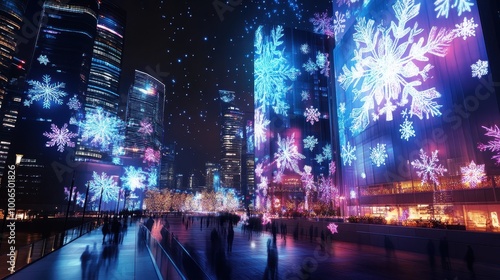 © tantawat, Obraz premium Vibrant Cityscape with Holographic Displays at Night