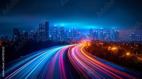 © PRI, Fototapeta premium Vibrant cityscape with light trails at night