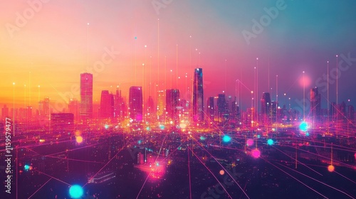 © Faizer, Fototapeta premium Vibrant Cityscape with Soft Light and Glowing Effects