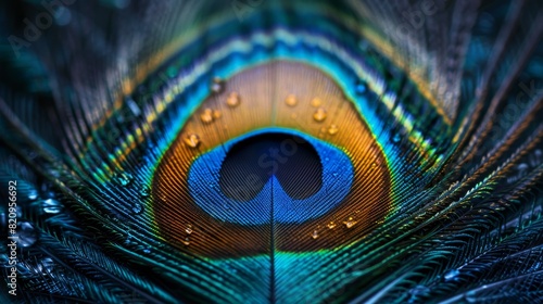 © AiAbstract, Naklejka premium Vibrant Close-Up of a Peacock Feather on Colorful Background