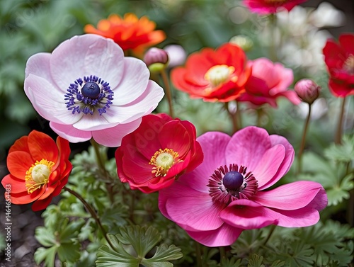 Fototapeta premium "Vibrant Close-Up of Blooming Anemone Flowers in a Field"