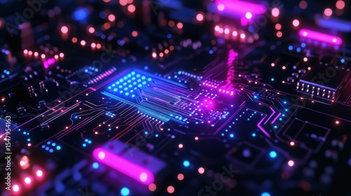 Obraz premium Vibrant Close-Up of Circuit Board with Glowing LED Lights