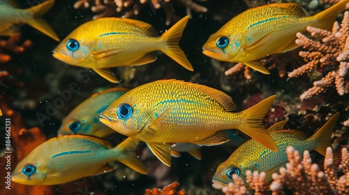 © StrawberryShortcake, Fototapeta premium Vibrant close up view of colorful fish gracefully swimming in crystal clear water