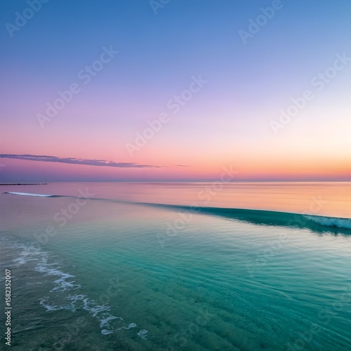 © artificial_azad!, Naklejka premium Vibrant Coastal Sunset, Teal Ocean Water and Lush Green Beach Grass
