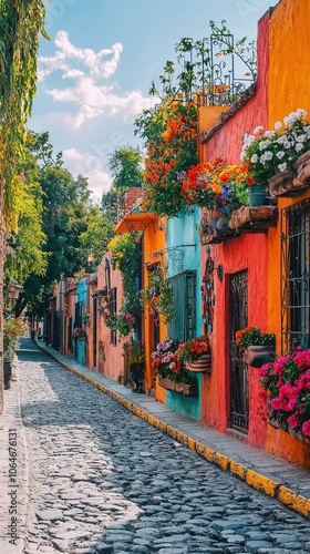 © Kitta Studio, Fototapeta premium Vibrant Cobblestone Street with Colorful Buildings