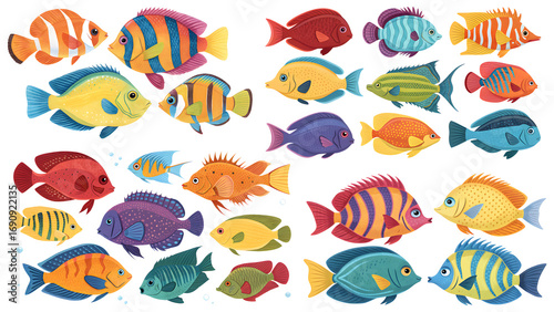 Naklejka premium Vibrant collage of tropical saltwater fish diverse marine aquarium life
