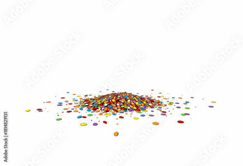 Fototapeta premium Vibrant Collection of Multicolored Candies Scatter Joyfully on Clean White...