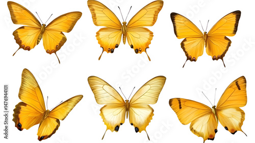 © Jamali, Fototapeta premium Vibrant Collection of Yellow Butterflies - Transparent Background