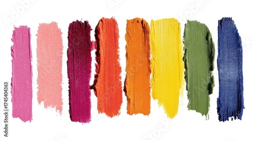 © slamet, Fototapeta premium Vibrant color palette with various paint strokes on a white background