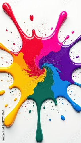 © Татьяна Антоненко, Fototapeta premium Vibrant color splash: multi-colored paint swirl on white background.