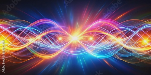 Obraz premium Vibrant-colored light waves converge and overlap, forming a mesmerizing...