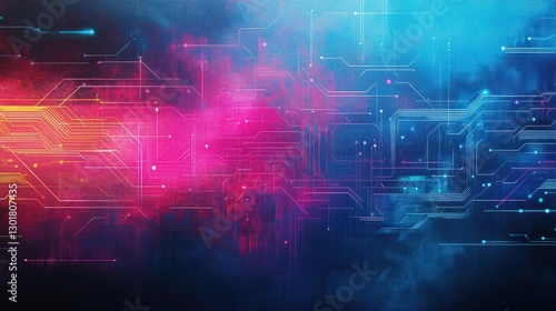 Fototapeta premium Vibrant Colorful Abstract Background Featuring Intricate Circuit Pattern Evoking Technology Innovation and Artistic Expression in Modern Design Aesthetic