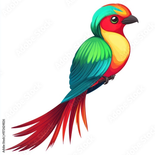 © lestari, Obraz premium Vibrant Colorful Bird with Long Red Tail Feathers