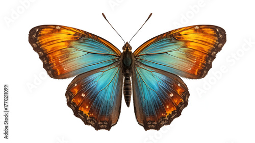© Maria, Obraz premium Vibrant Colorful Butterfly Isolated on White Background, High-Resolution Insect Image for Nature