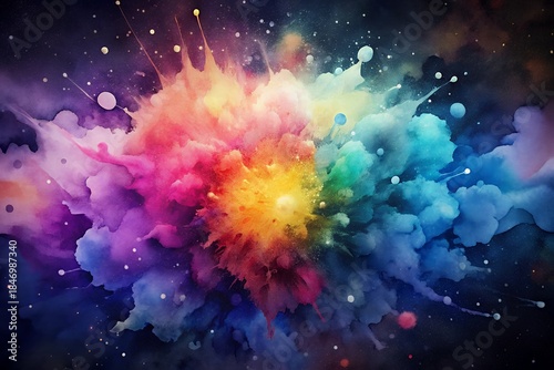 Obraz premium Vibrant colorful explosion of paint in space with rainbow hues and dynamic...