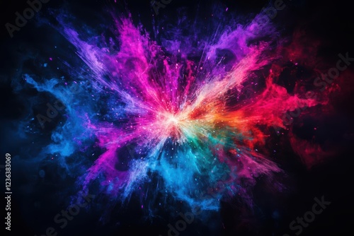 © taweesak, Obraz premium Vibrant Colorful Explosion of Powder Creating Dynamic Patterns Against Dark Background Evoking Energy Joy and Creativity in Artistic Expression