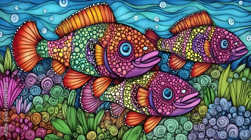 © Baharul, Fototapeta premium Vibrant Colorful Fish School Underwater Coral Reef