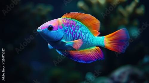 © SETSU 21, Naklejka premium Vibrant Colorful Fish Swimming in Clear Underwater Environment