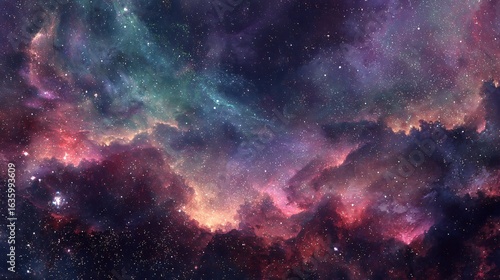 © Nisha50, Obraz premium Vibrant Colorful Galaxy Clouds Nebula Background for Creative Designs