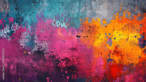 Obraz premium Vibrant Colorful Graffiti Texture, A vibrant abstract graffiti texture featuring splashes of bold colors like pink, orange, and teal.
